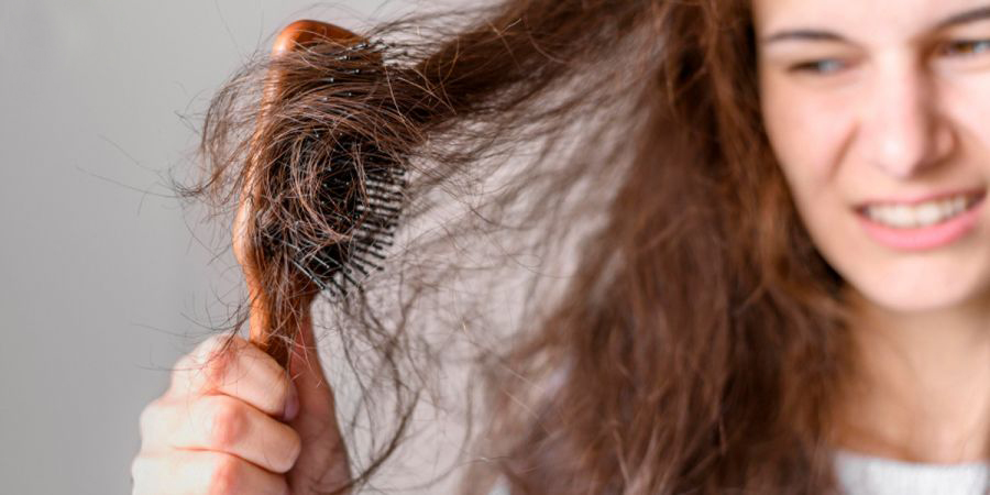 کشیدن زیاد مو: برس زدن شدید، شانه کردن موهای خیس و استفاده از لوازم جانبی موی بی کیفیت می تواند باعث آسیب و شکستگی مو شود.